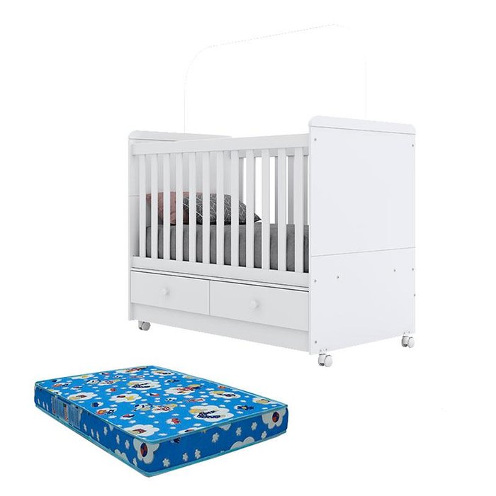 Berço Americano Aquarela Branco Cristal Flex com Colchão Ortobom – Henn
