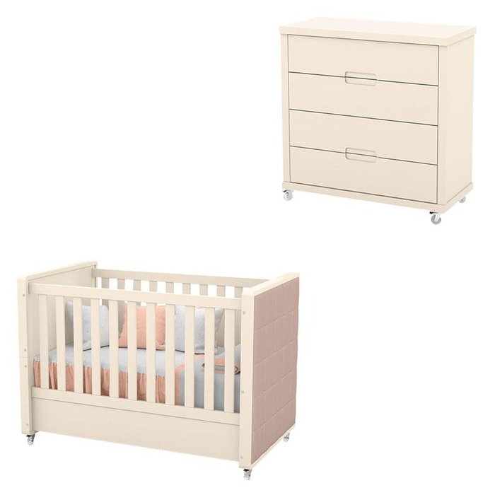 Berço Americano com Capitonê e Gaveteiro Tutto New Off White - Matic