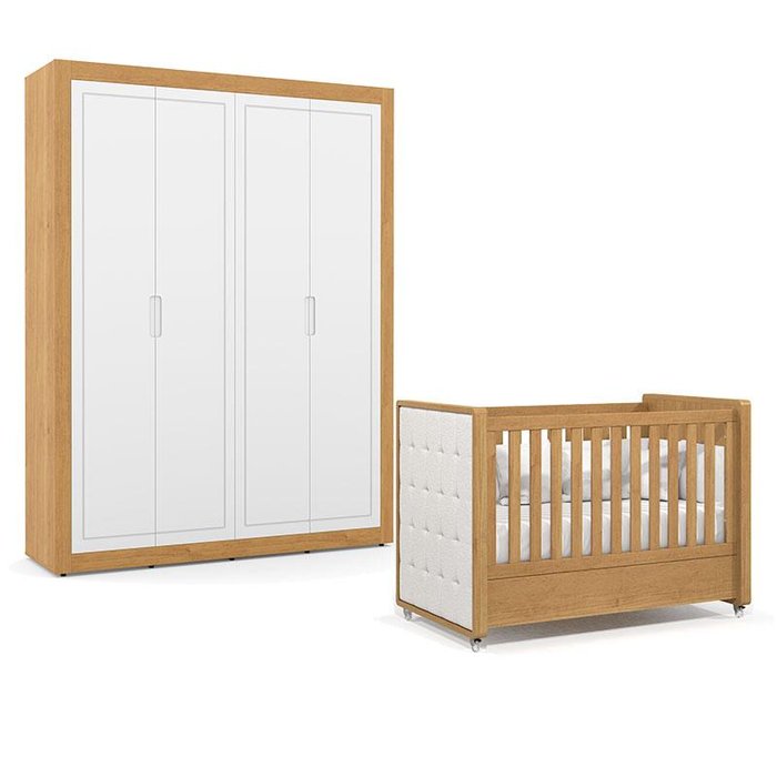 Berço Americano com Capitonê New Boucle e Guarda Roupa Tutto New 4 Portas Freijó - Matic