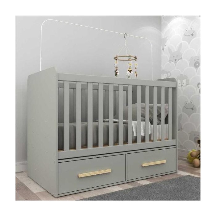 Berço Americano com Duas Gavetas 100% MDF Certificado Inmetro Luna Cinza/Natural Cinza/Natural