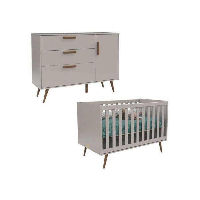 Berço Americano e Cômoda Infantil 1 Porta Retro - Cinza Eco Wood – Matic