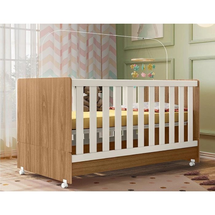 O Berco Mini Cama Encanto Peternella Moveis e produzido em MDP/MDF bio-sustentavel de 12 mm. Aprovado e certificado conforme regulamento do Inmetro, conta ainda com pintura UV de alto brilho, suporte para mosquiteiro, quatro rodízios... sendo 02 com trava e 02 sem trava . Suas grades fixas de MDF proporcionam uma maior segurança ao bebê. Seu padrão é de berço americano e posteriormente poderá ser transformado em uma mini cama.