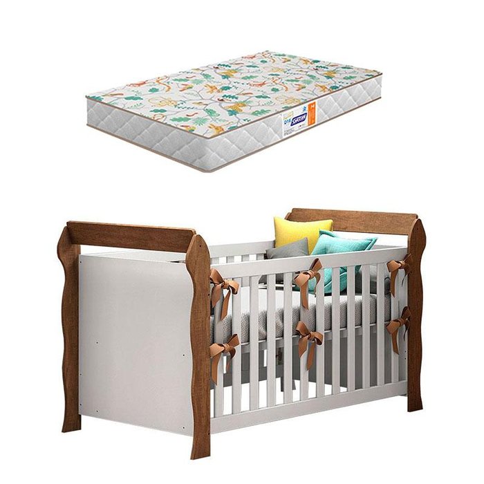Berço Americano Lara Branco Acetinado Amadeirado com Colchão Gazin – Carolina
