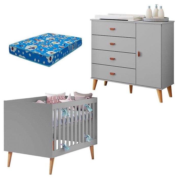 Procurando por móveis para o quarto do bebê, e esta em dúvida de qual modelo escolher, apresentamos a vocês essa linda opção composta por Berço Americano da linha Ludmila e Cômoda Infantil com Porta da linha Duda ambos desenvolvidos pela Carolina Baby pensando no conforto do bebê e da mamãe, a cômoda pode ser usada como fraldario para melhor lhe auxiliar no seu dia a dia na hora de trocar o bebê, possui amplo espaço interno para maior praticidade e organização das roupinhas, sapatinhos e acessórios, sistema de Travas Anti-Tombamento fixados na parede evitando acidentes para maior segurança de todos, o Berço transforma-se em mini cama e sofá cama aumentando a vida útil do móvel, acompanhando as fazes de crescimento da criança, conta com lindo design na cor Cinza com Pés estilo Retrô na cor Bétula proporcionando modernidade e tranquilidade ao ambiente, fabricados com materiais de excelentes qualidades, resistência e durabilidade, e ainda acompanha Colchão da Ortobom. Não deixe de aproveitar, confira e garanta já o seu!