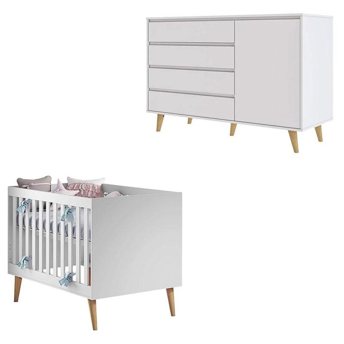 Berço Americano Ludmila e Cômoda Gran Lorena Branco Acetinado Bétula – Carolina Baby