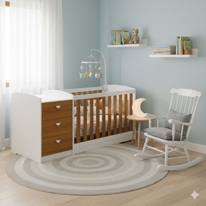 Apresentamos o Berço Americano Atlanta com Cômoda 3 Gavetas, um versátil berço que foi projetado para acompanhar a fase de crescimento do seu pequeno, oferecendo funcionalidade e estilo por muitos anos.