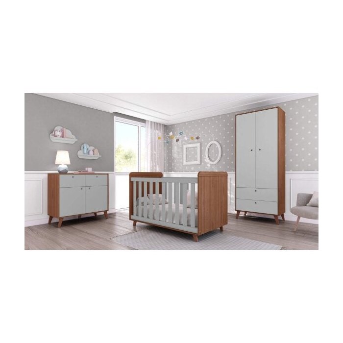 Berço Americano Retrô Carvalho Avelã/Cinza
