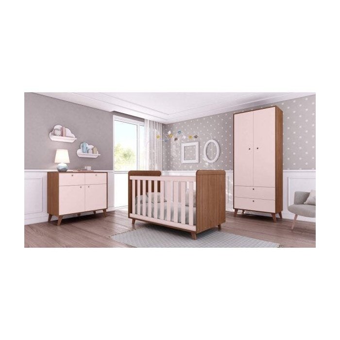 Berço Americano Retrô Carvalho Avelã/Rosa