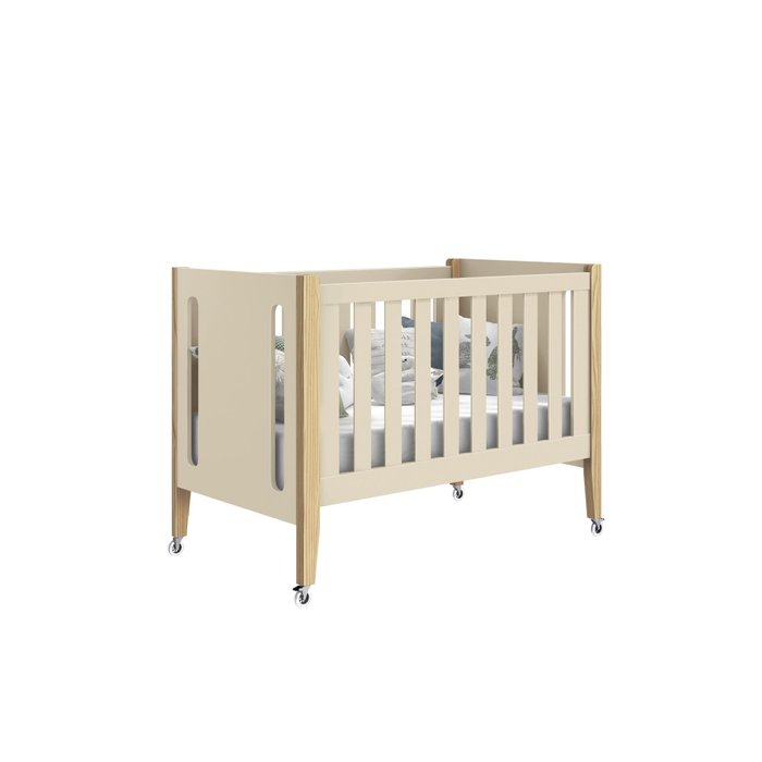 Berço Areia Tom 3 em 1 com pés madeira natural Reller