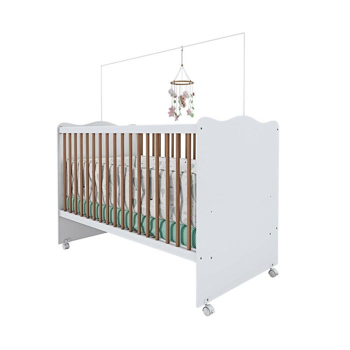 O conceito de berço 2 em 1 promove melhor aproveitamento do móvel, podendo se transformar em berço e mini cama, possibilitando que seu bebê utilize-o até por volta dos 5 anos. Possui 2 rodízios com trava e 2 sem trava. Estrutura em MDP e estrado em MDF dando mais resistência e durabilidade para o produto Não Acompanha Colchão Dimensão do Berço: Altura: 95,5 cm Largura: 132,8 cm Prioridade: 77 cm Informações do Berço: Cor: Branco. Material Principal: MDP/ MDF. Pés: Sim (4) Rodízios. Grade Fixa. Estrado em MDF com duas regulagens de altura. Mosquiteiro aramado. Não Acompanha Colchão Itens Inclusos: 1 Berço Manual de Montagem Kit completo para montagem e manual de instruções Garantia: 3 meses contra defeito de fabricação Informações Adicionais: - Fotos meramente ilustrativas do produto no ambiente. - Os objetos que ambientam as fotos não acompanham o produto; - Verificar descrição e tamanho do produto antes da compra. - Avaliar a mercadoria no ato do recebimento e recuse em caso de divergência ou avarias. - Mantenha as informações de contato e endereço de entrega atualizados para entrarmos em contato caso necessário. - Limpar com flanela ou pano macio seco, não utilizar produtos abrasivos, desengordurantes, álcool ou solvente. Não expor o produto diretamente à luz solar e à umidade. * Sugerimos a contratação de um montador profissional para a montagem do produto. Não nos responsabilizamos por avarias causadas no ato da montagem. * Não nos responsabilizamos pela montagem e desmontagem do produto no ato da entrega e devolução, assim como os custos gerados nestas situações. * A transportadora entregará o produto no andar térreo do endereço de entrega. * Não nos responsabilizamos por subir escadas, corredores e elevadores ou transporte por guincho em apartamentos.