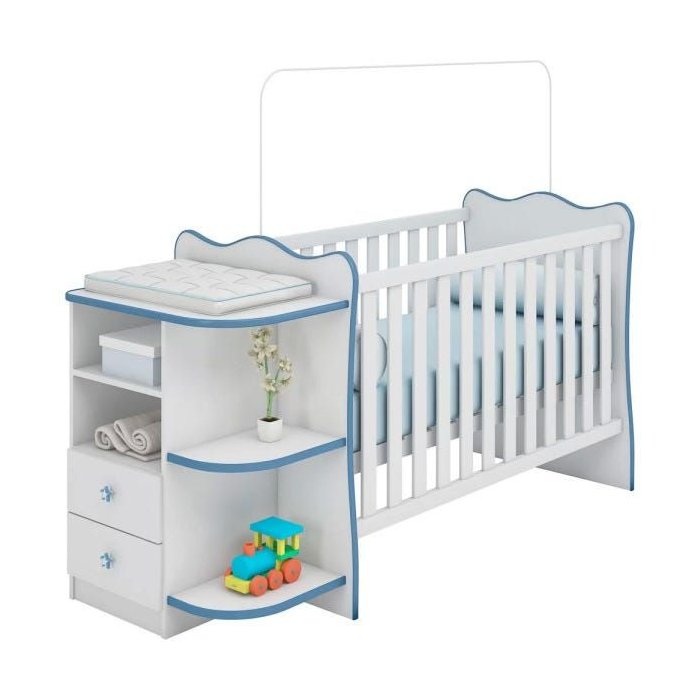 Berço Cômoda Doce Sonho com Cantoneira Certificado Inmetro - Qmovi - Branco / Azul