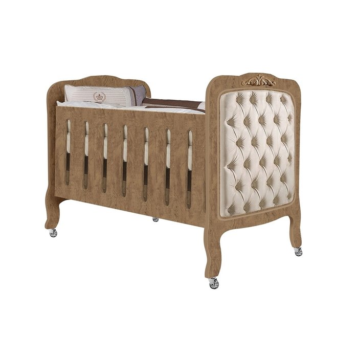 Berço Imperial Com Capitonê Amêndoa/Bege – Planet Baby Móveis
