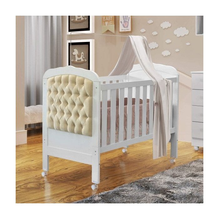 Berço Mini Cama Allegra Capitone II Tigus Baby Suede Cru Branco
