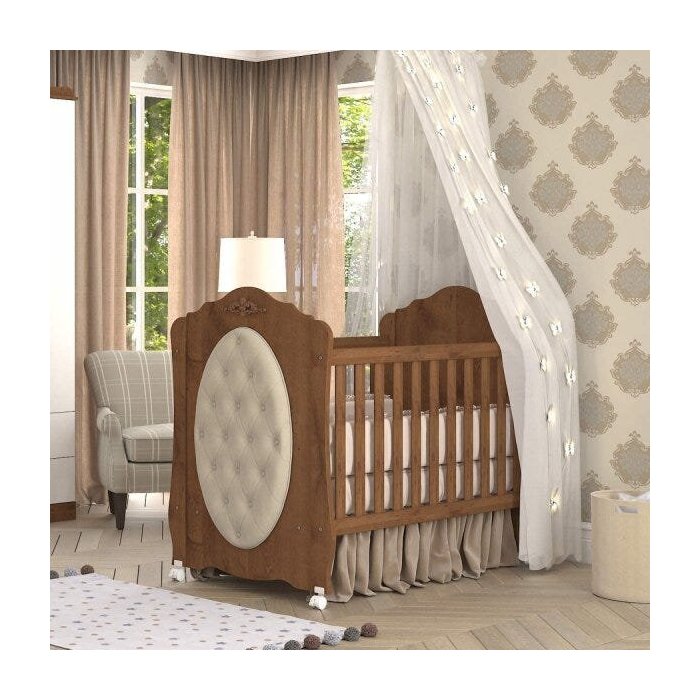 Berço Mini Cama com Capitonê Amor Espresso Móveis Savana/Branco
