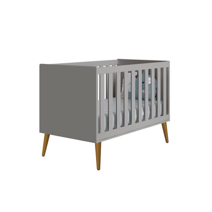 Berço Mini Cama Retrô Theo Cinza Fosco - Reller