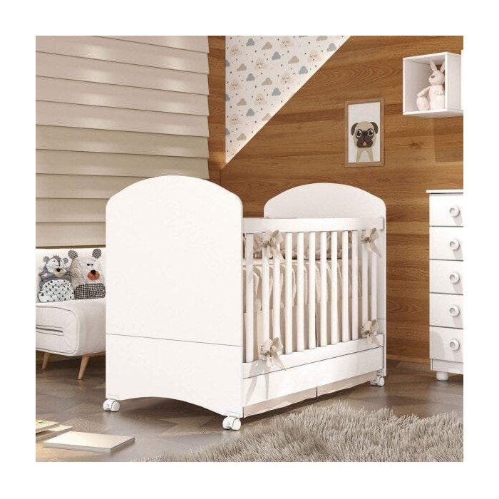 Este maravilhoso Berço Delicato é um produto que vai levar mais elegância e sofisticação para o quarto do seu bebê. Produzido em 100% MDF, grade fixa e rodízios de PVC, estrado de ripas multilaminadas, madeira resistente que garante estabilidade e segurança, ele é a melhor opção para deixar que seu anjinho descanse. O melhor de tudo é que ele acompanha o crescimento do seu filhote, se transformando em mini cama.