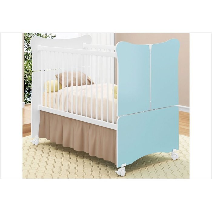 Berço Mini Cama Super Doce Magia com Rodízios - Qmovi - Branco / Azul