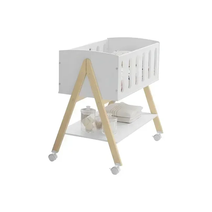 Berço Mini Sissi Matic Mdf Branco Natural Prático e Versátil Infantil