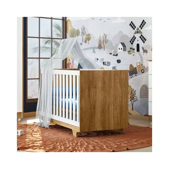 Berço Minicama 100% Mdf Life com Colchão 130x60x12 Tigus Baby - Branco/madeirado Ypê