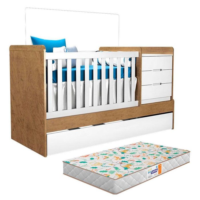 Berço Multifuncional Cléo Branco Acetinado Amadeirado com Colchão Gazin - Carolina Móveis