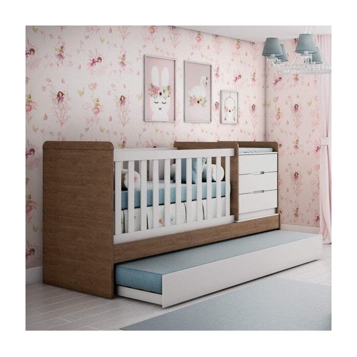 Quer elegância e delicadeza para o quarto do seu baby? O Berço Multifuncional Cléo da Carolina Baby, é versátil e elegante, com características que destacam o berço. Quando montado em berço, ele possui uma cama auxiliar com rodízios, mini cômoda e apoio para o trocador. É possível também ser transformado em uma mini cama, que é perfeita para quando seu baby estiver crescidinho, e transformar a mini cômoda em um criado-mudo. Produzido em MDF de alta resistência que é apropriado para produção de móveis, ecologicamente correto, e elaborado com madeira reflorestada, apresentando alto nível de durabilidade, e não sofre alteração com as variações de temperatura. Com propriedades e características que o possibilitam ser transformado em uma linda mini cama, segura e confortável, que irá acompanhar a fase mais gostosa e divertida da vida das crianças material de alta qualidade. Segurança para o bebê é sempre indispensável quando o assunto é móvel, por isso, a Carolina Baby produziu o Berço Cléo com superfícies lisas e bordas arredondadas, além das grades laterais com pequena distância entre ripas, evitando que a criança caia ou fique presa, e além disso, tem Certificado Inmetro 006281/2017. A montagem dele e suas mudanças não estão inclusas, e a garantia dele é de até 90 dias por defeito de fabricação.