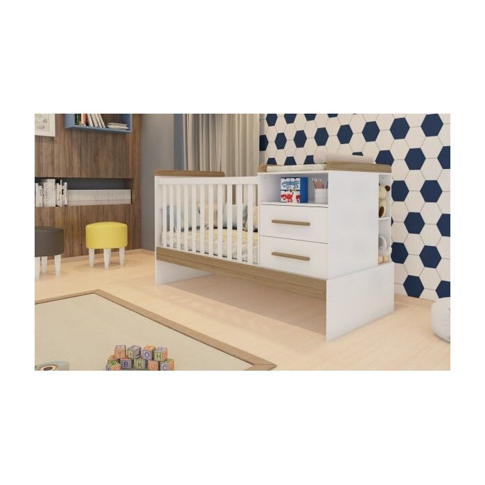 Berço Multifuncional Vini Branco / Branco com Carvalho Peroba - Branco Brilho com Carvalho Branco Brilho / Branco Brilho com Carvalho
