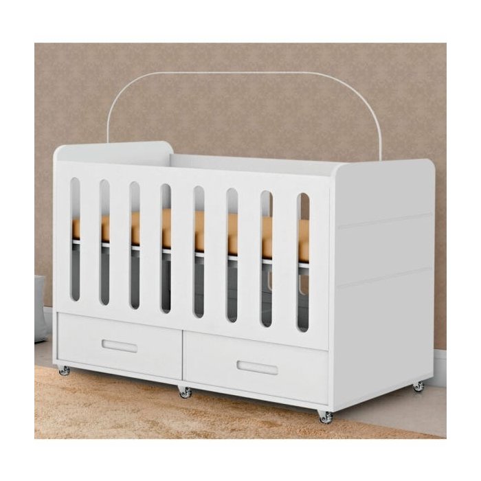 Acompanha 2 gavetas com ótima profundidade e varal para mosquiteiro, que garante noites tranquilas e seguras, sem picadas de mosquitos.
