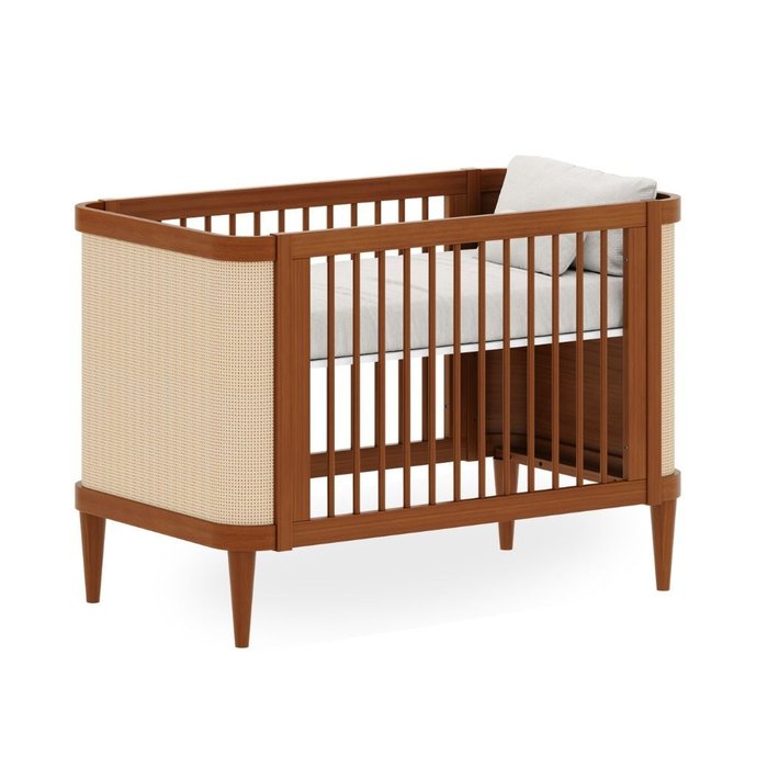 O Berço Paglia 2 em 1 na cor Nogueira é a união perfeita entre elegância e funcionalidade. Produzido em madeira maciça e com laterais em palhinha natural, ele combina o tom aconchegante do nogueira com o toque artesanal da palha, criando um ambiente sofisticado e acolhedor para o bebê.