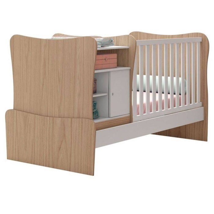 Berço Que Vira Cama Doce Magia Carvalho/Branco - Qmovi