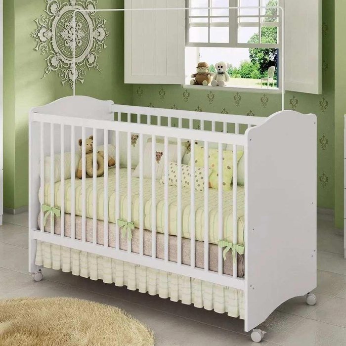 Estrutura em MDP de boa estabilidade e grande capacidade de absorção de tinta, o que assegura excelente acabamento em caso de pinturas e revestimentos. O material é produzido em três camadas: uma grossa no miolo e duas finas nas superfícies, todas com grande uniformidade das partículas. Suas características mecânicas superiores às de materiais similares, conferem mais resistência no arrancamento de parafusos. Grade fixa para colchão de 1,30m x 60cm, mosquiteiro aramado. Estrado com 3 regulagens de altura, 2 rodízios com trava e 2 sem trava.Dimensões:Altura: 97cmLargura: 1,34mProfundidade: 68cmPeso: 25,35kg Garantia: 3 mesesImagem Ilustrativa: As imagens são meramente ilustrativas não acompanhando objetos de enfeites e eletros. Ao receber o produto verifique as condições da embalagem. Confira as dimensões do produto e certifique-se de que passarão normalmente por supostos elevadores, portas, escadas ou corredores de sua moradia.Montagem:A Loja não disponibiliza o serviço de montagem, a montagem é de total responsabilidade do comprador. Recomendamos que a montagem seja feita por um profissional da área.