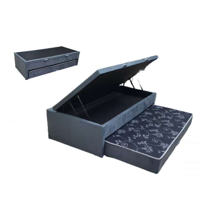 Bicama Box Baú Solteiro 88x188 com Cama Auxiliar de Molas Ensacadas 3x1 Suede Cinza
