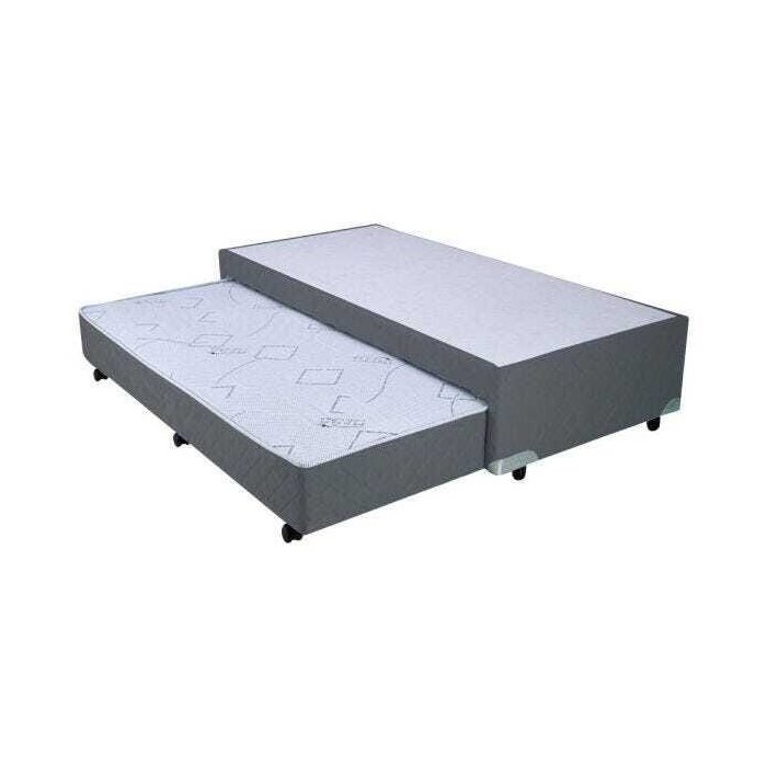 A Bicama Box Mega Suede Cinza com Auxiliar em Molas: possui um colchão de molas Superlastic que sai de dentro do Box, aproveitando assim o espaço interno do produto, podendo oferecer mais uma opção de conforto para os hóspedes.