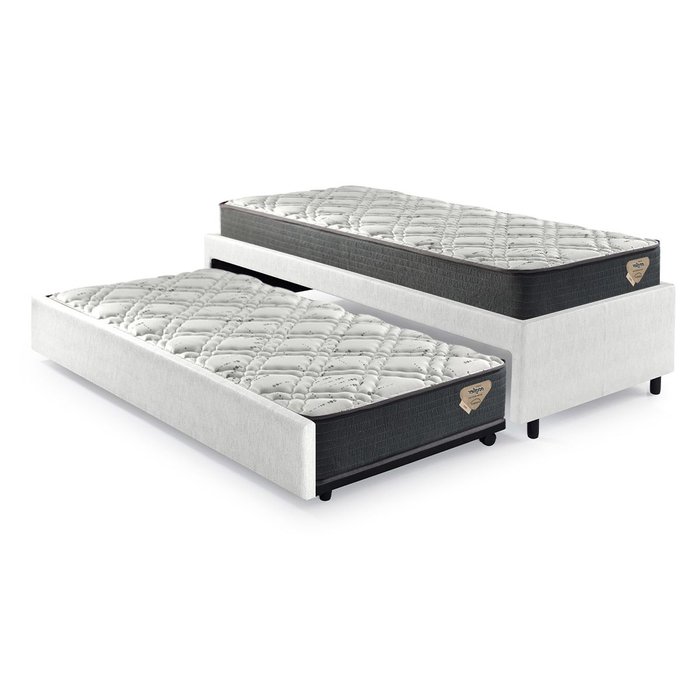 Um produto exclusivo Cama InHouse, a Bicama Bedsleep Solteirão inova trazendo aos clientes a opção de escolher além do colchão principal, também o colchão auxiliar, pois a cama auxiliar suporta um colchão de até 26 cm de altura.