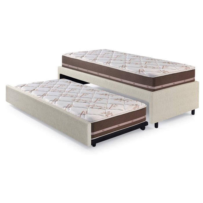 Conjunto Bicama BedSleep Solteiro Courino Linho Areia com 2 Colchões Solteiro Classic Molas Ensacadas Anjos