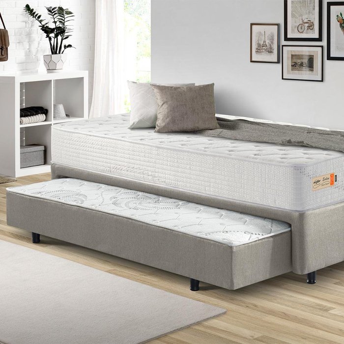 Bicama Box Solteiro Ecoflex 88x188x61cm com Cama Auxiliar e Colchão Ecoline Espuma D33 Firme