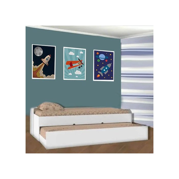 Com a cama juvenil e cama auxiliar você vai poupar espaço e ainda deixar tudo muito organizado.