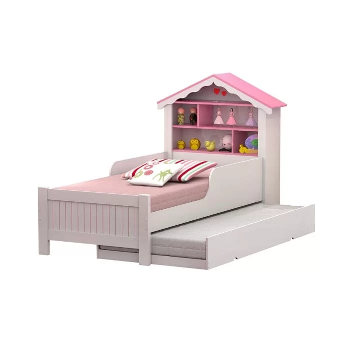 Bicama Casa Menina Rosa Solteiro com Colchões Branco