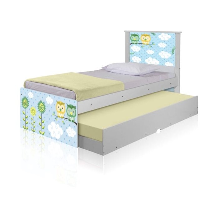 Bicama Juvenil Barcelona Adesivada Corujinhas com 2 Colchões - Branco Ref. 1401 A Bicama Juvenil Barcelona Adesivada Corujinhas é belíssima e conta com um design funcional, que ocupa pouco espaço no ambiente. A Coleção Corujinhas foi desenvolvida por nossos designers oferecendo um visual exclusivo, descontraído e divertido ao ambiente. A cama auxiliar fica embaixo da principal e basta puxá-la por meio das corrediças para começar a fazer uso dela. É ideal para quartos pequenos e para caso precise de uma cama extra para receber um amigo, ou divida o dormitório com alguém. Feita em MDF e MDP e seu acabamento é feito com pintura UV brilhante tornando-a um produto resistente e com aspecto de novo por muito mais tempo. É uma excelente escolha para acomodar colchões de solteiro na medida de 188 cm x 88 cm de largura. - Medidas da Cama: Altura: 107 cm Largura: 96 cm Comprimento: 195 cm - Medidas da Cama Auxiliar: Altura: 26 cm Largura: 188 cm Comprimento: 92 cm Informações do produto: - Cor do produto: Branco - Material: MDF/MDP - Colchão Incluso: 2 unidades (88cm x 188cm - solteiro) - Tipo de Colchão: Espuma D20 - Garantia: 3 meses contra defeito de fabricação. - Peso máximo suportado: 95 kg por cama. Itens Inclusos: 01 Cama Solteiro com Cama Auxiliar. 02 Colchões solteiro D20 88cm x 188cm. Kit completo para montagem, manual detalhado de instruções. Informações complementares: - Fotos meramente ilustrativas do produto no ambiente. - Verificar descrição e tamanho do produto antes da compra. - Avaliar a mercadoria no ato do recebimento e recusar em caso de divergência ou avarias. - Mantenha as informações de contato e endereço de entrega atualizados para entrarmos em contato caso necessário. * Sugerimos a contratação de um montador profissional para a montagem do produto. Não nos responsabilizamos por avarias causadas no ato da montagem. * Não nos responsabilizamos pela montagem e desmontagem do produto no ato da entrega e devolução, assim como os custos gerados nestas situações. * A transportadora entregará o produto no andar térreo do endereço de entrega. * Não nos responsabilizamos por subir escadas, corredores e elevadores ou transporte por guincho em apartamentos.