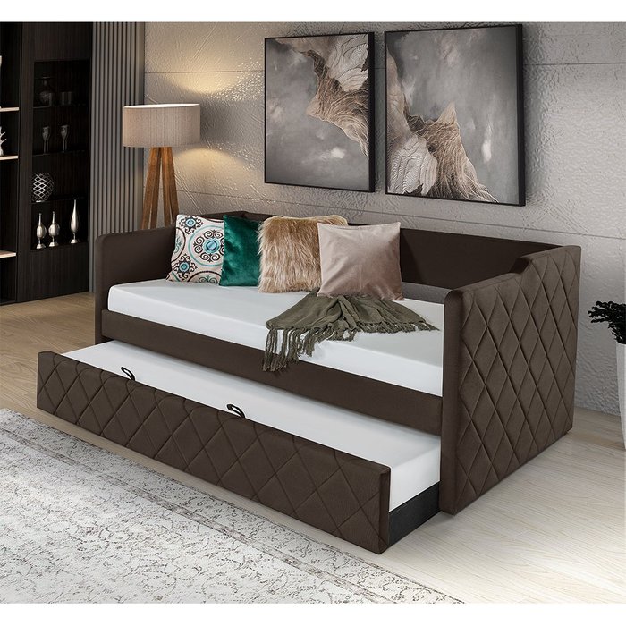 Bicama de Madeira Moderna com Revestimento de Tecido Veludo Pávia Dubai - Valorize - Marrom
