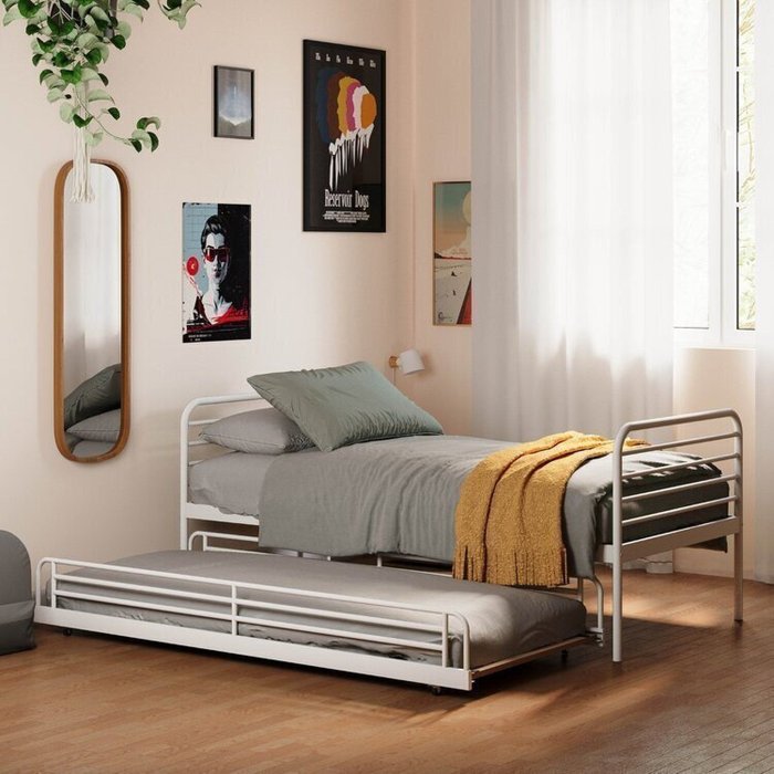 O estrado em MDF garante firmeza e conforto, enquanto a cama auxiliar com rodízios de plástico oferece movimentação suave, sem danificar o piso ideal para receber visitas ou ampliar o espaço de descanso com praticidade.