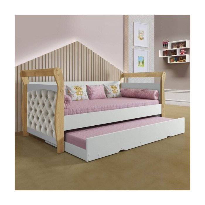Bicama Infantil Babá Capitonê Tigus Baby Suede Cru/Branco Acetinado/Naturale