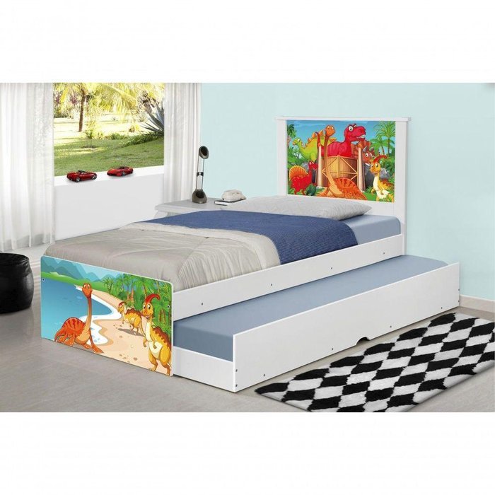 Bicama Juvenil Barcelona Adesivada Terra dos Dinossauros com 2 Colchões - Branco