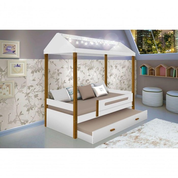 Bicama Montessoriana Sara com Colchões Casinha com Cordão de Luz