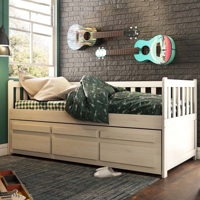 Bicama Reta Solteiro Branco Lavado 3 Gavetas Madeira Pinus - Saraiva