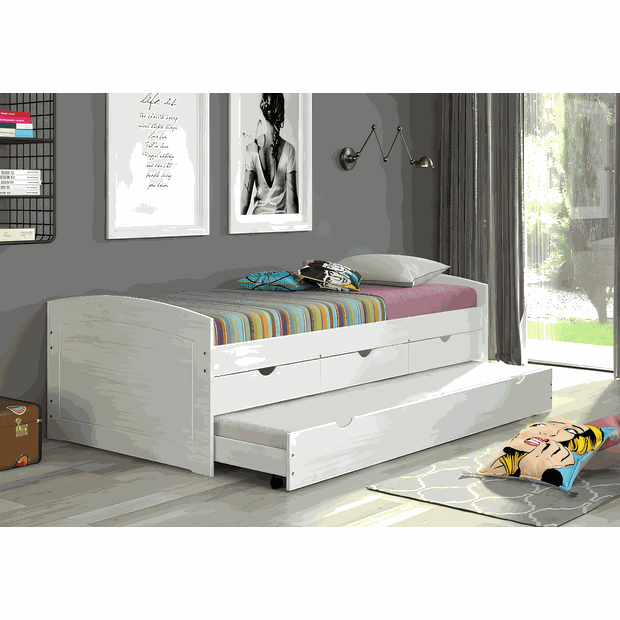 Bicama Solteiro 3 Gavetas em Madeira Maciça Ulli Branco Lavado