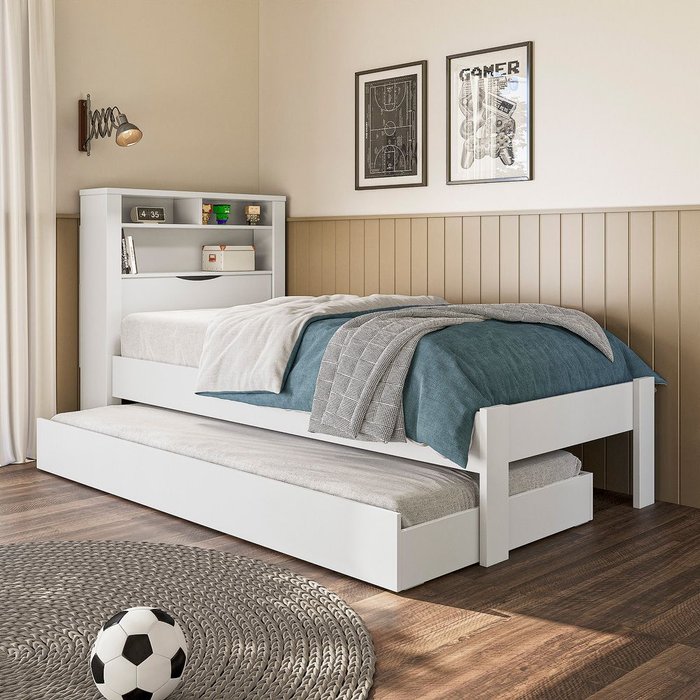 Bicama Solteiro 97,5x215,6cm 3 Nichos com Baú Invicta Branco