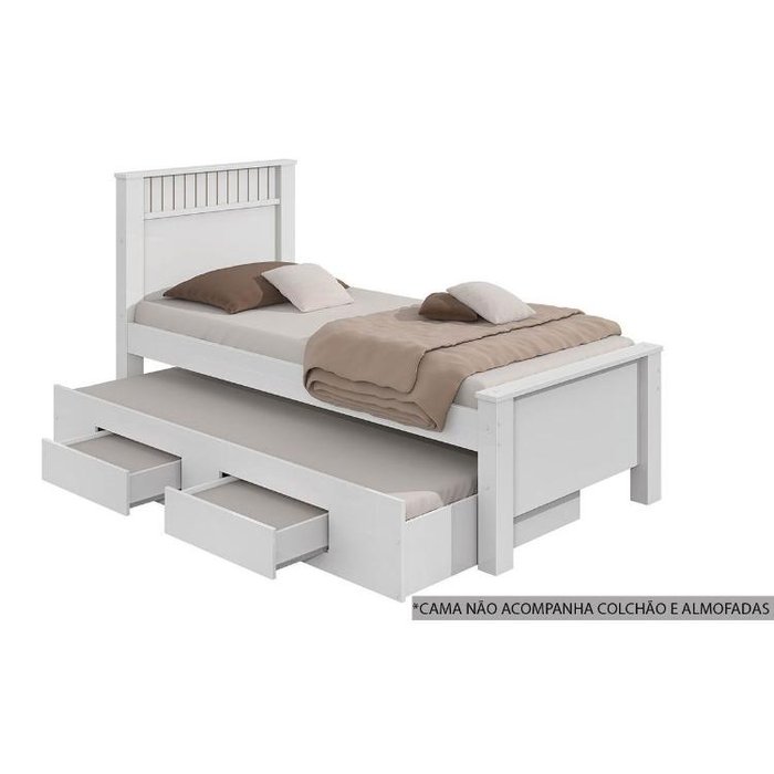 Bicama Solteiro Athenas 2 Gavetas c/Auxiliar Branco - Lopas Branco