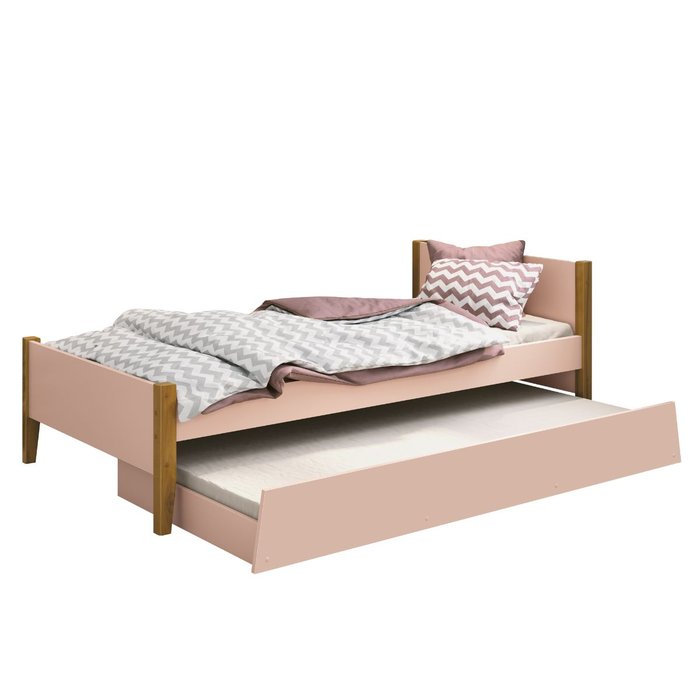 Bicama Solteiro Simba Pés Madeira - Reller D. P. Ticiano Moveis Eireli Epp Reller Rosa Fosco