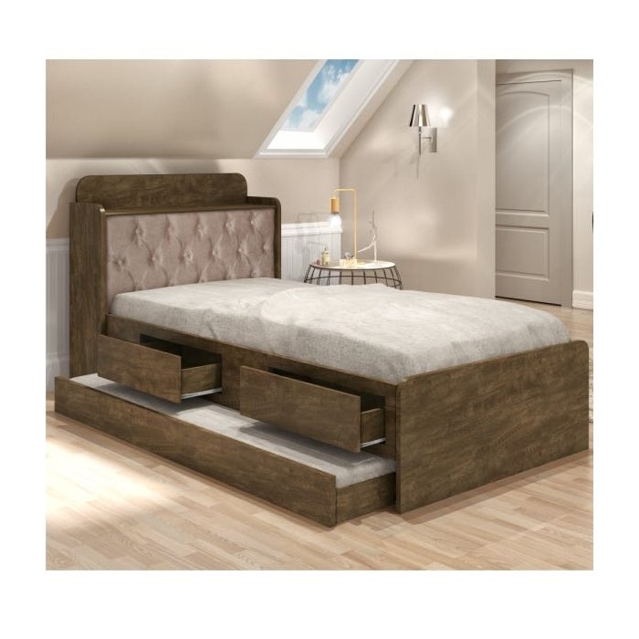 Bicama Tamires com Bau Castanho Capitone Nogal com Colchão