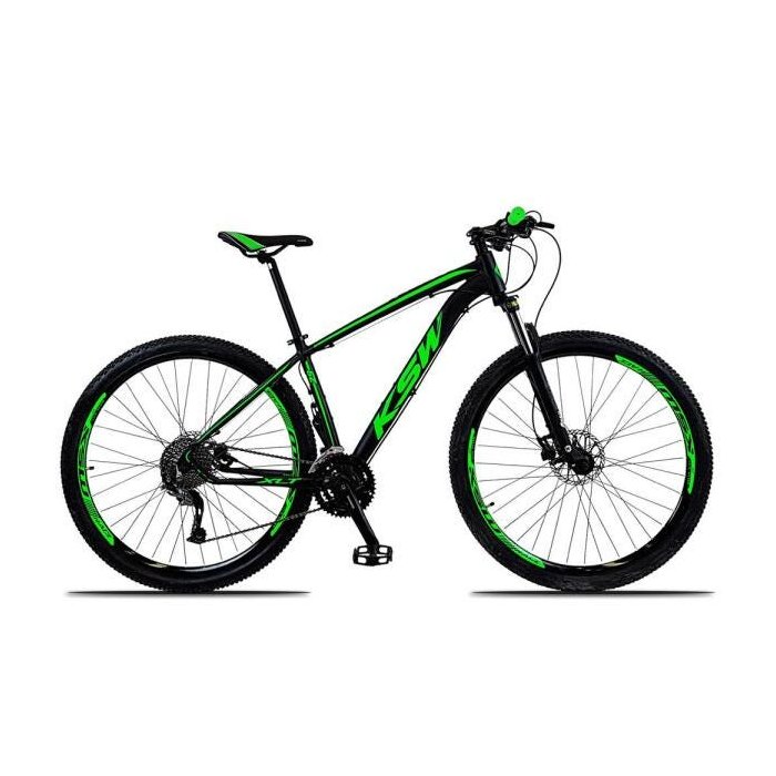 Bicicleta 29 KSW 27v Câmbio Shimano Alívio Disco Hidráulico Suspensão com Trava Pto/Vrd 21